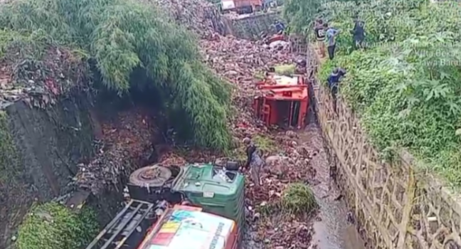 “Iya longsor, truk tertimpa sampah. Itu sampah sudah terlalu tinggi pas truk melintas ketimpa sampah akhirnya masuk ke dalam kali. Wilayah Sumur Batu, ada tiga truk sampah yang terperosok ke Kali,” ujar Kapolsek Bantargebang Kompol Sukadi, Rabu (31/12/2025).